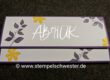 Hier habe ich die Folien in blau und silber von WOW Fab Foil verwendet. Zunächst habe ich den Schriftzug gedruckt, die Folie aufgelegt und durch das Laminiergerät geschoben.