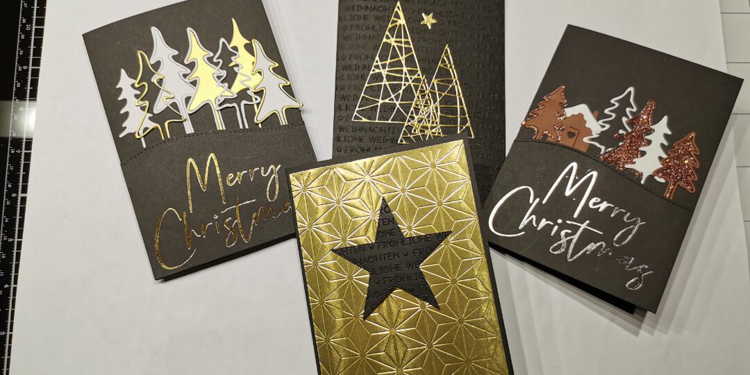 Die letzten Wochen habe ich fast nur Weihnachtskarten gefertigt. Der Fokus liegt bei mir in diesem Jahr vor allem auf weiß/goldenen oder schwarz/goldenen Karten.