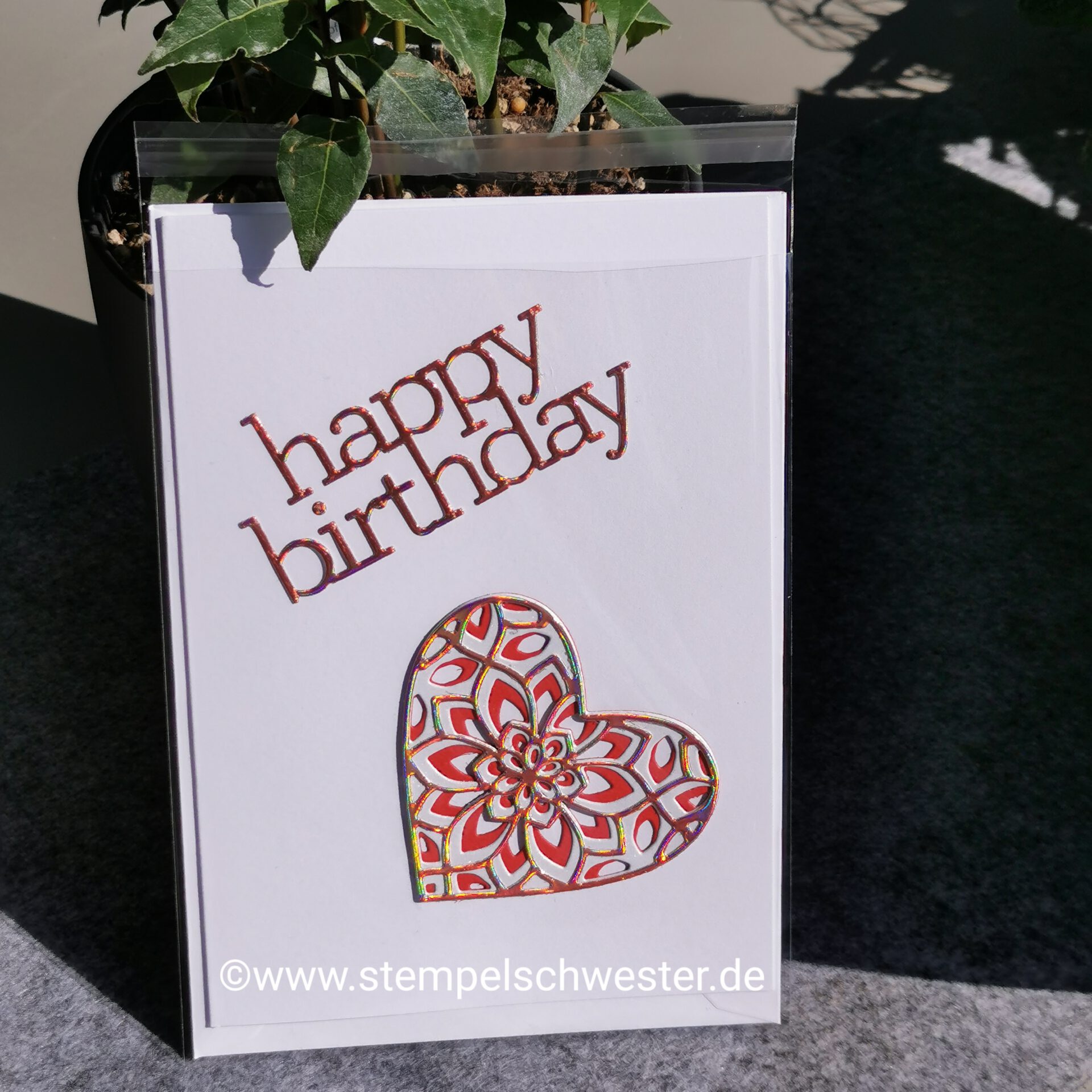 Heute möchte ich Euch ein paar Geburtstagskarten mit dem tollen Stanzenset „Kinsley Heart A-C“ von Birch Press zeigen: