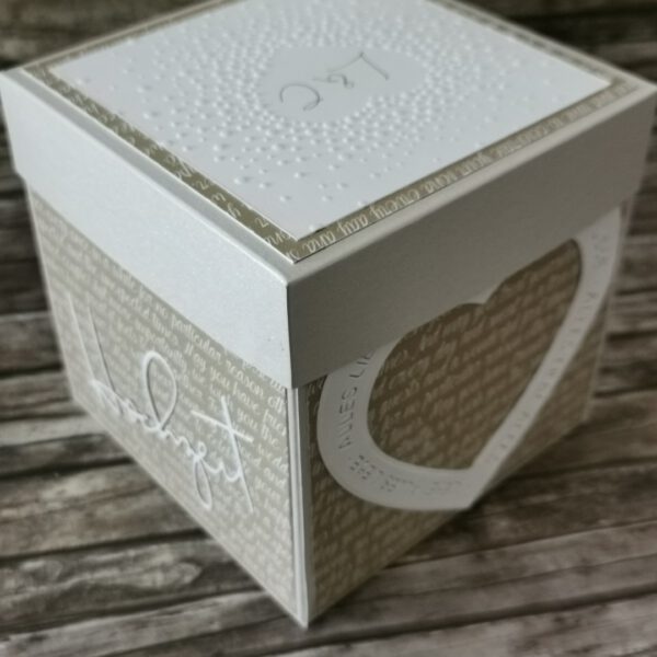 Unter Explosionsboxen versteht man in der Regel kleine, quadratische Schachteln mit einem Deckel. Wenn der Deckel abgehoben wird, fallen die Seiten auseinander. Manchmal fertige ich auch Boxen mit einem rechteckigen Grundriss oder Boxen mit 2 stehenden Wänden.